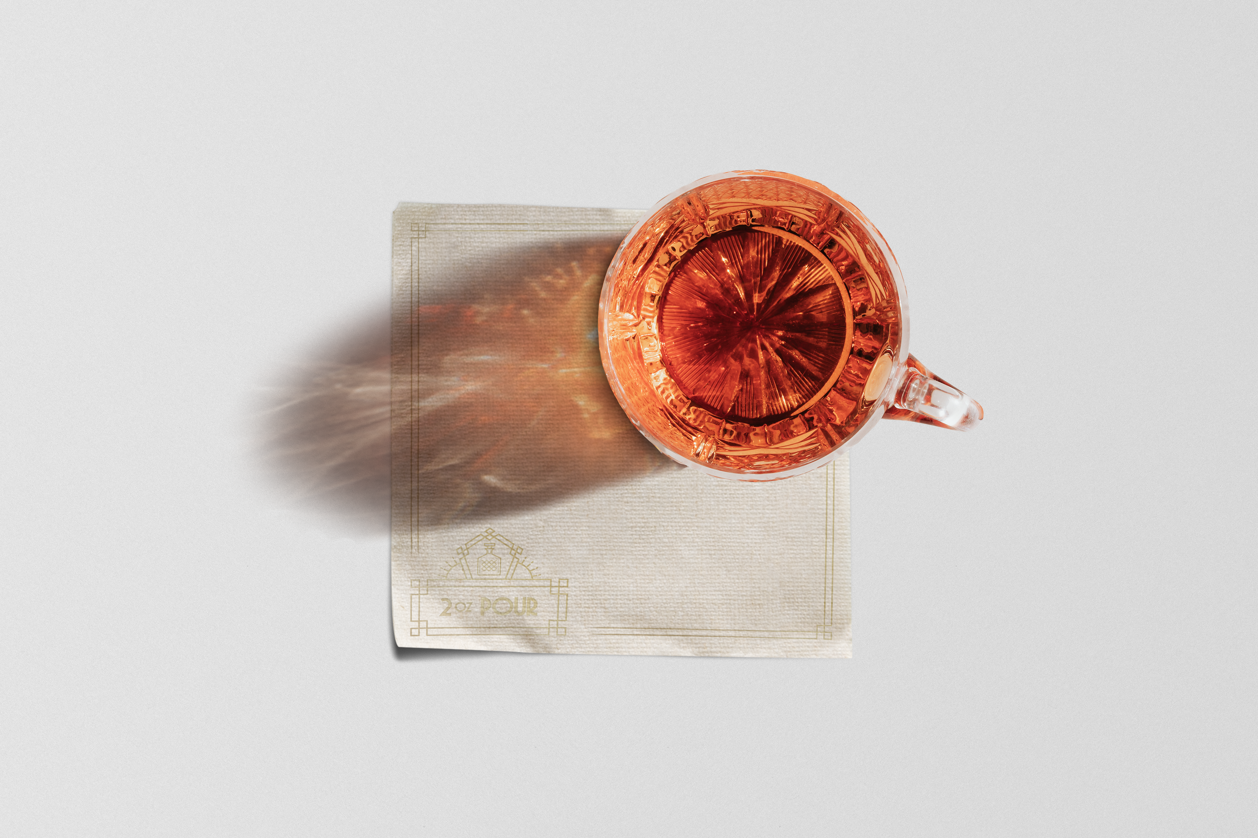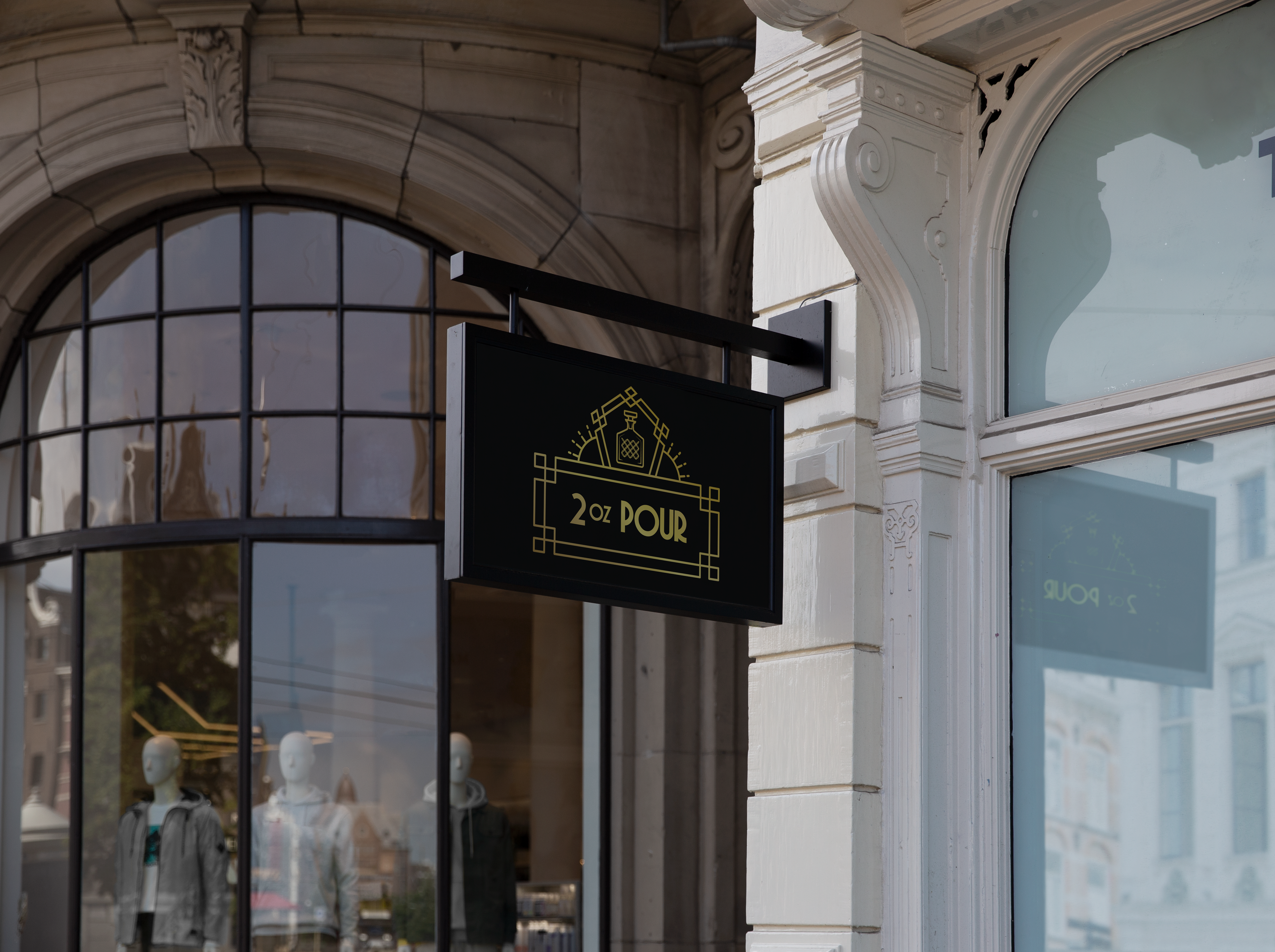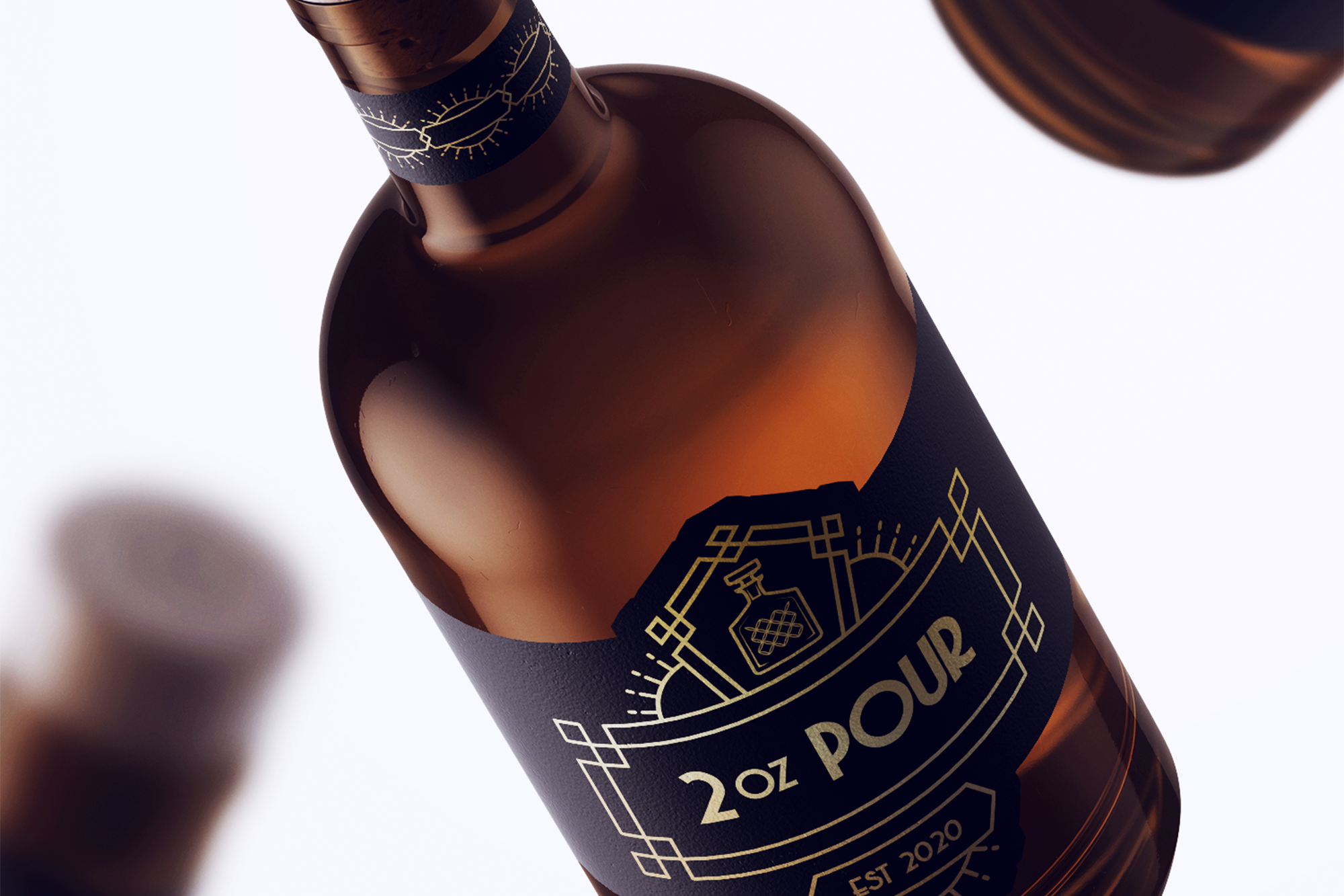 2oz Pour, is an esteemed bourbon-based brand located in the vibrant city of Orlando, Florida. They commissioned me with the task of crafting a new logo for their company’s modern take on the 1920s era.