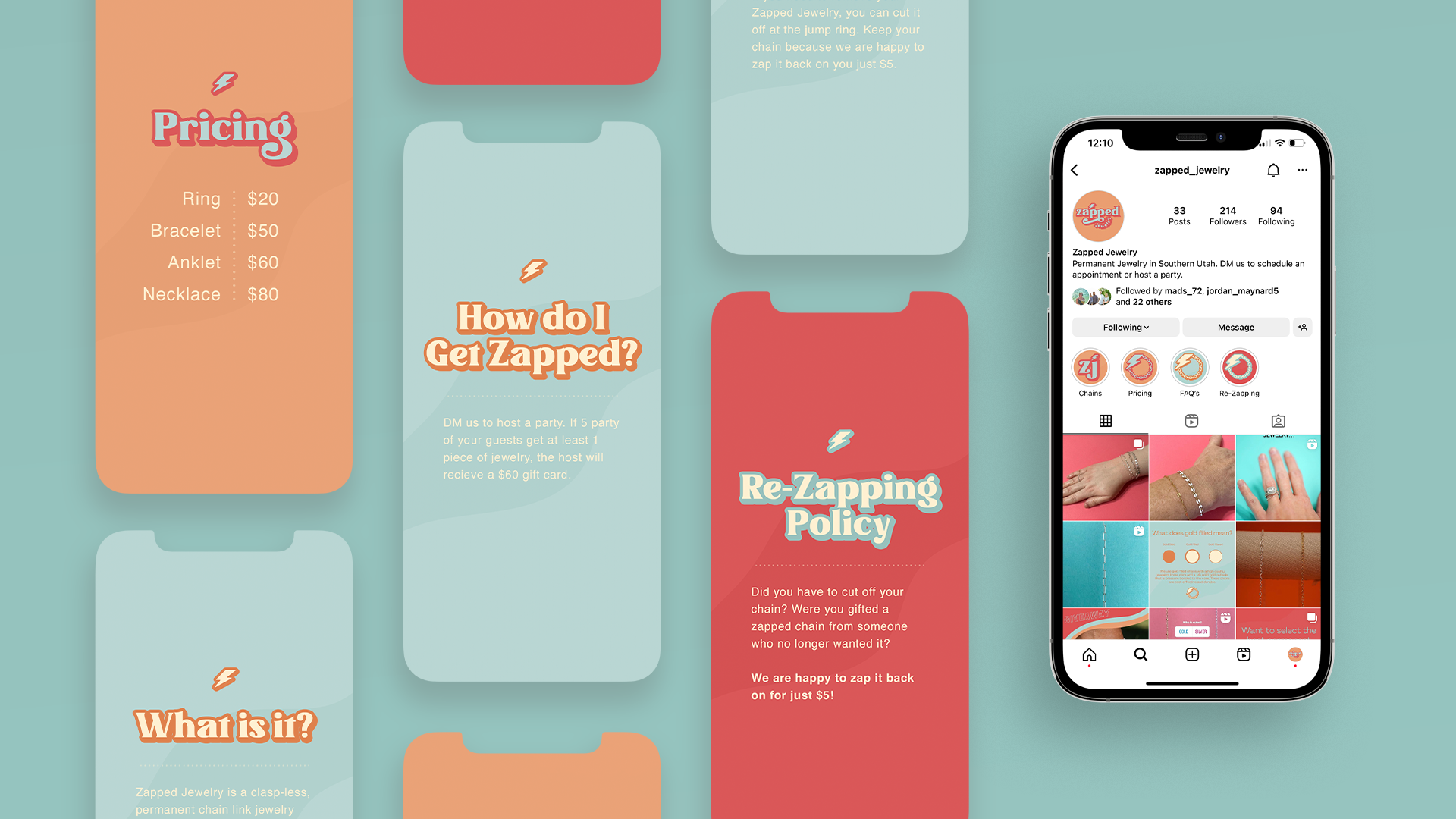 Zapped wanted to stand apart from the neutral toned, monotonous jewelry businesses that oversaturate the market. They sought to create a brand with bright, bold colors, lively visuals, and a fun tone of voice.